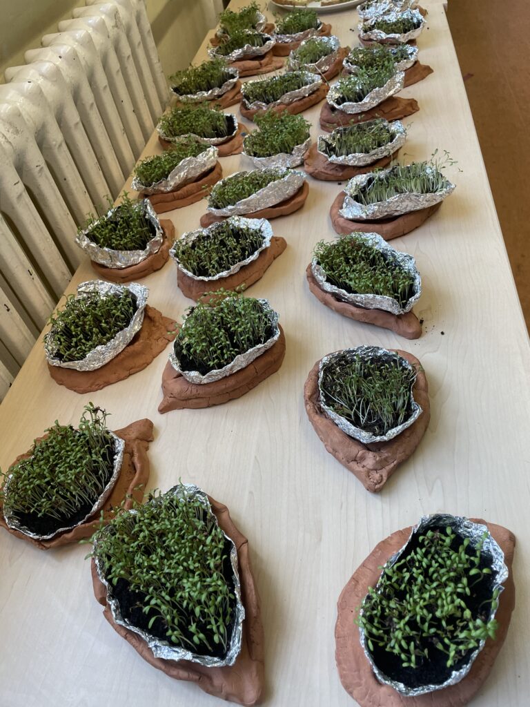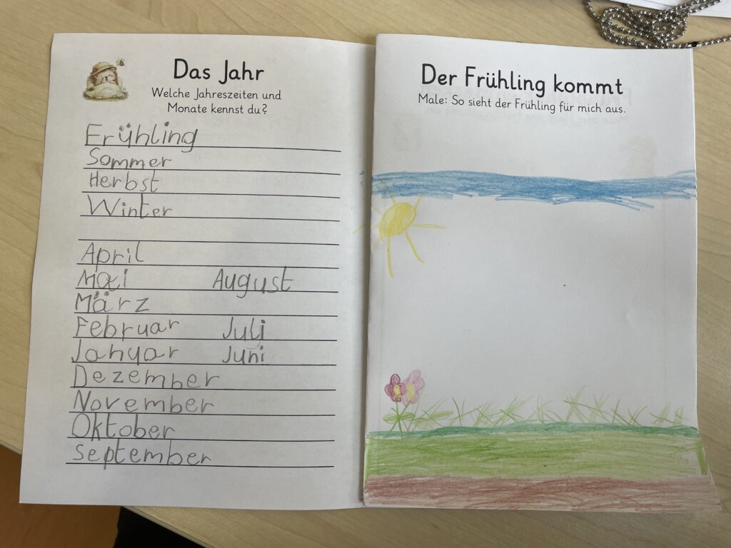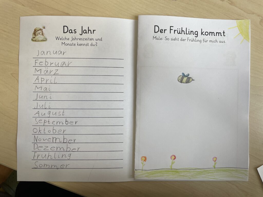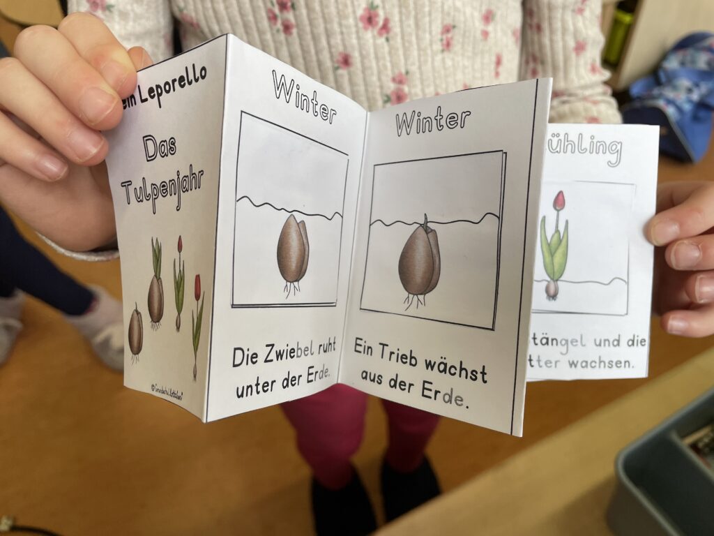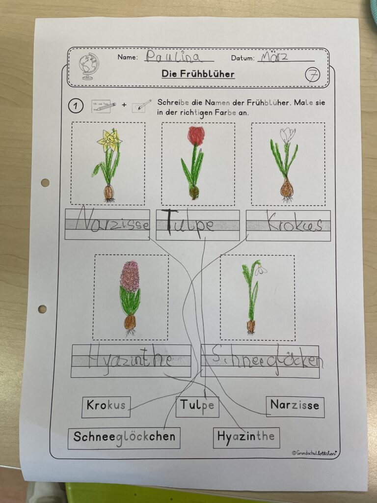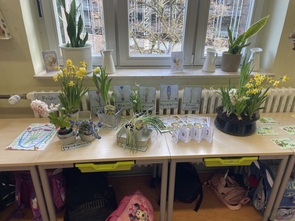 Die Schülerinnen und Schüler lernten das Jahr und die Jahreszeiten kennen, stellten Kresse-Igel aus Ton her, säten eigene Kressepflanzen und beobachteten täglich deren Wachstum und lernten verschiedene Frühblüher kennen. Ein besonderes Highlight war das Bepflanzen eines Beetes auf dem Schulhof – jedes Kind durfte eine Pflanze pflanzen. Wir danken ganz besonders dem Förderverein für die Unterstützung und die großzügige Spende der Blumen!